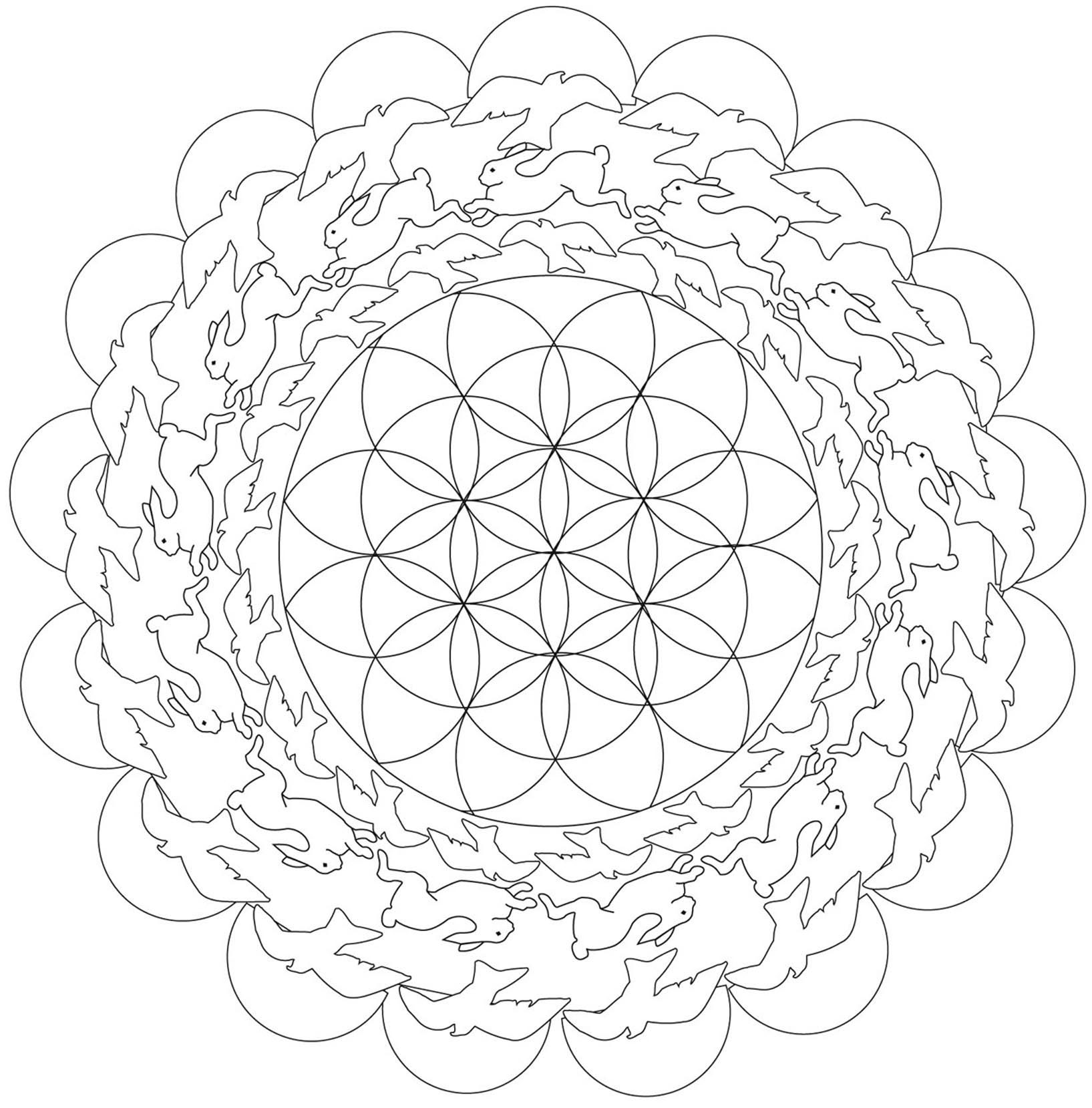 המנדלות למבוגרים, מגוונות ועם סמלים מעולם הגיאומטריה המקודשת.