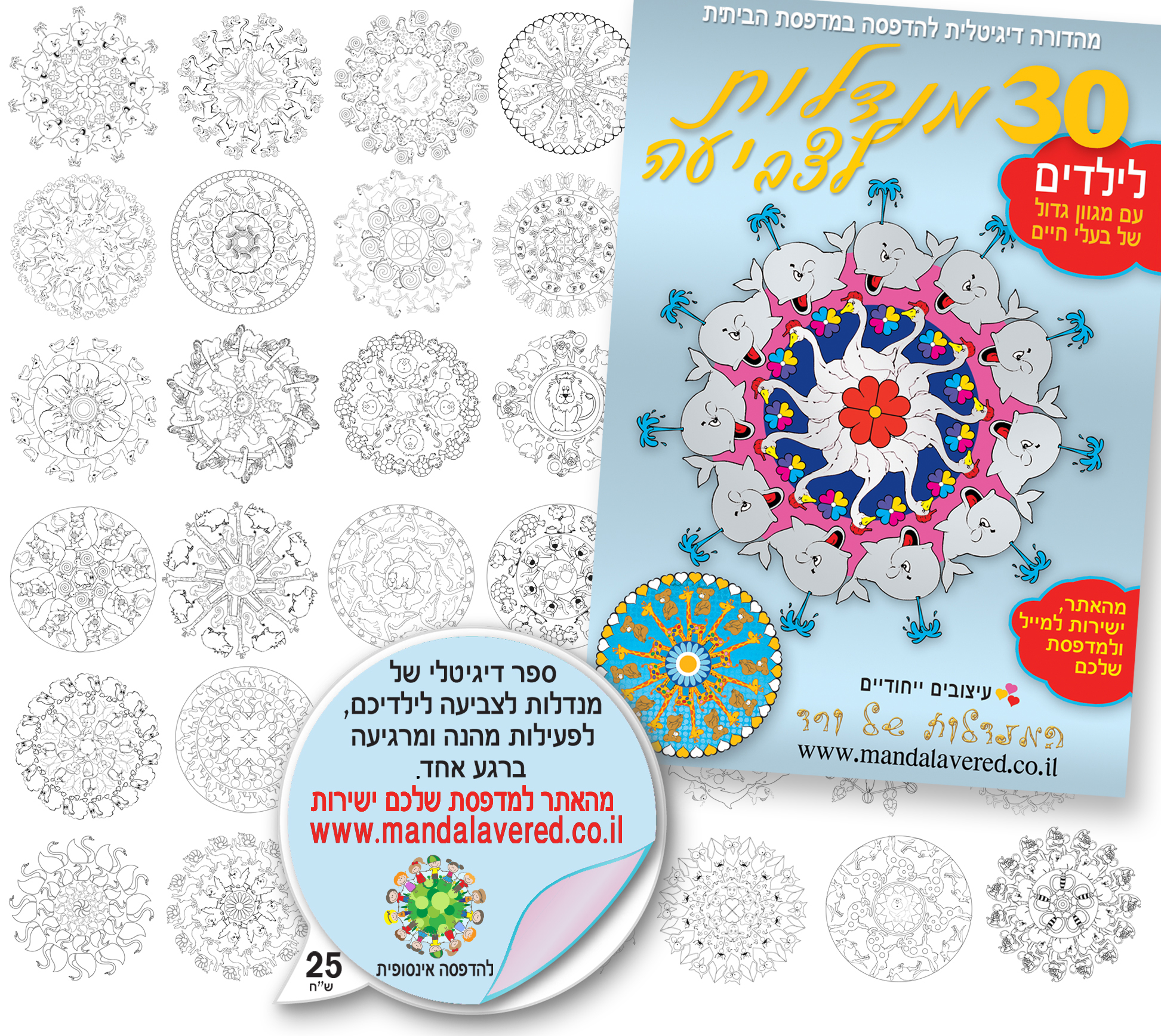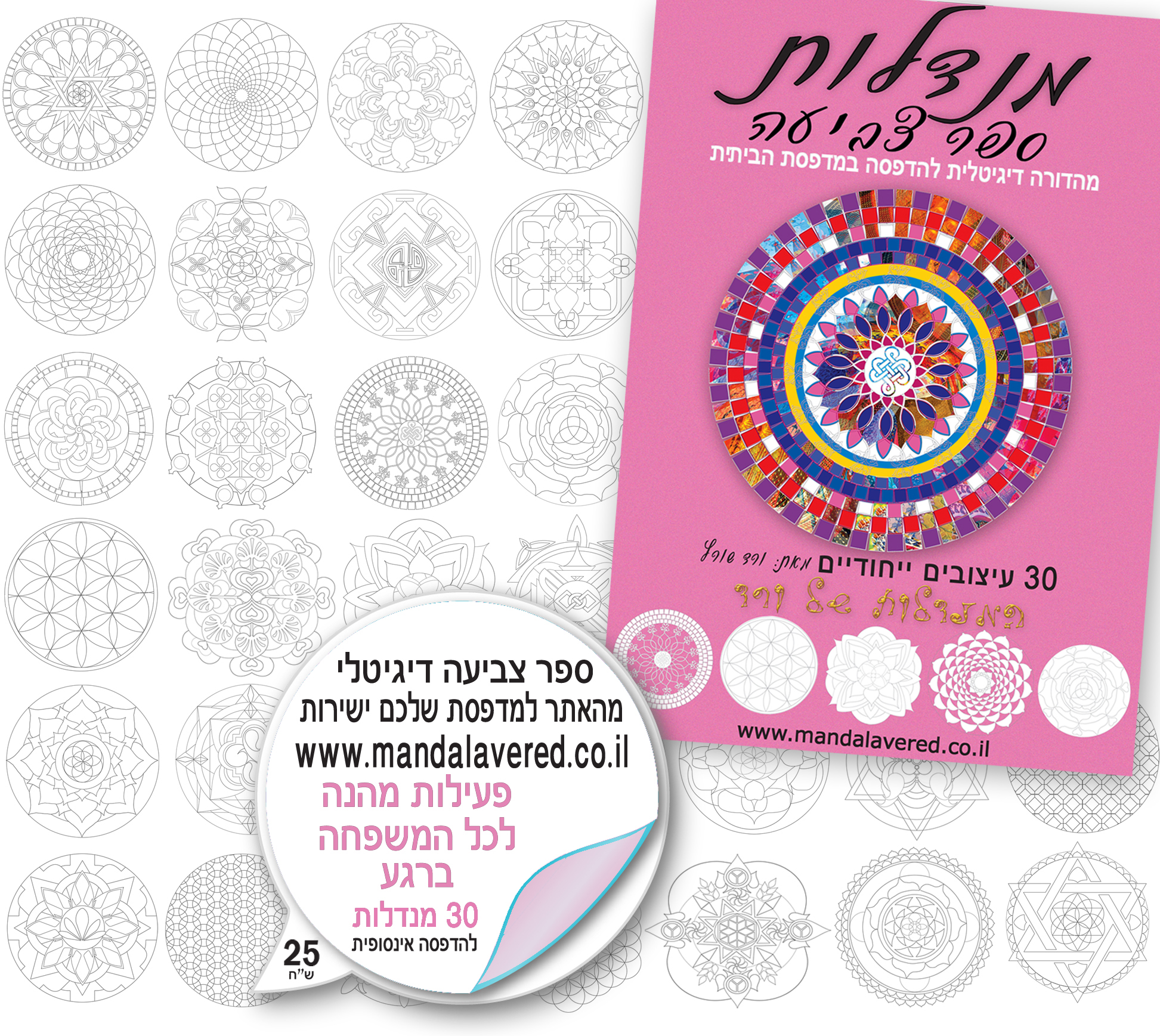 ספרי מנדלות דיגיטליים לצביעה, למכירה כאן באתר. הורדה ברגע אחד, ישירות למייל שלכם ומשם למדפסת שלכם.