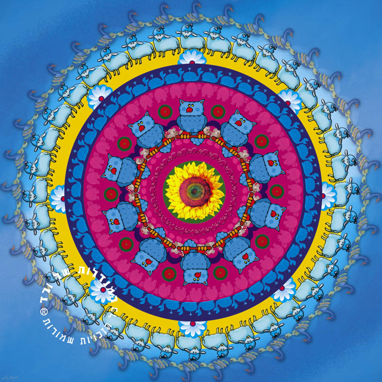 מנדלת בעלי חיים שונים צבעונית, בתוכה, ברווזים, כבשים, לוויתנים, דובים, ינשופים, קואלות, צבים ופרחים. במרכזה פרח החמניה הוא פרח השמש שלי.